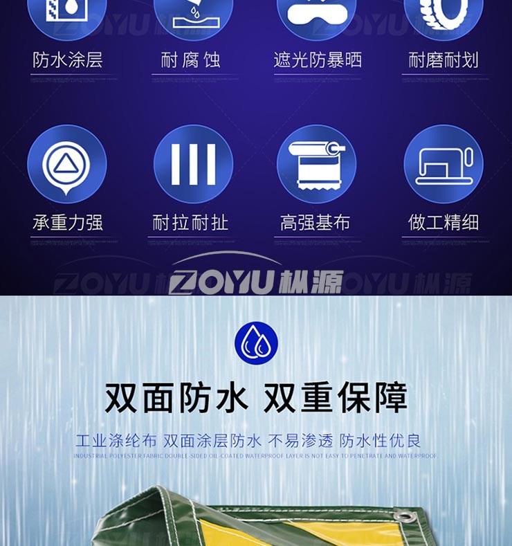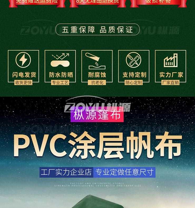 PVC涂塑布主要成份為聚氯乙烯,PVC篷布加工在制造過程中增加了增塑劑、抗老化劑等一些輔助材料來增強其耐熱性,韌性,延展性等,表面涂敷糊狀樹脂配加增速劑、防霉劑、防老化劑、劑等多種化學(xué)助劑,具有不性、高強度、耐氣侯變化性以及優(yōu)良的幾何穩(wěn)定性而且還具有防水、防霉、耐磨、耐用、耐寒、耐老化、等天性機能。